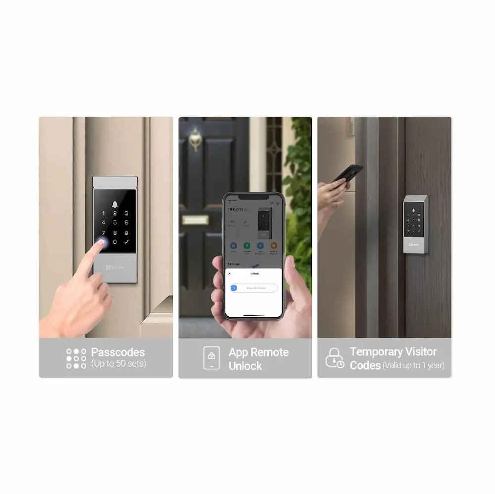 CERRADURA INTELIGENTE EZVIZ CS-DL04-R100-WBCP-GR CON HUELLA DACTILAR TARJETA DE PROXIMIDAD 2.4GHZ WIFI BLUETOOTH CS-DL04-R100-WBCP-GR