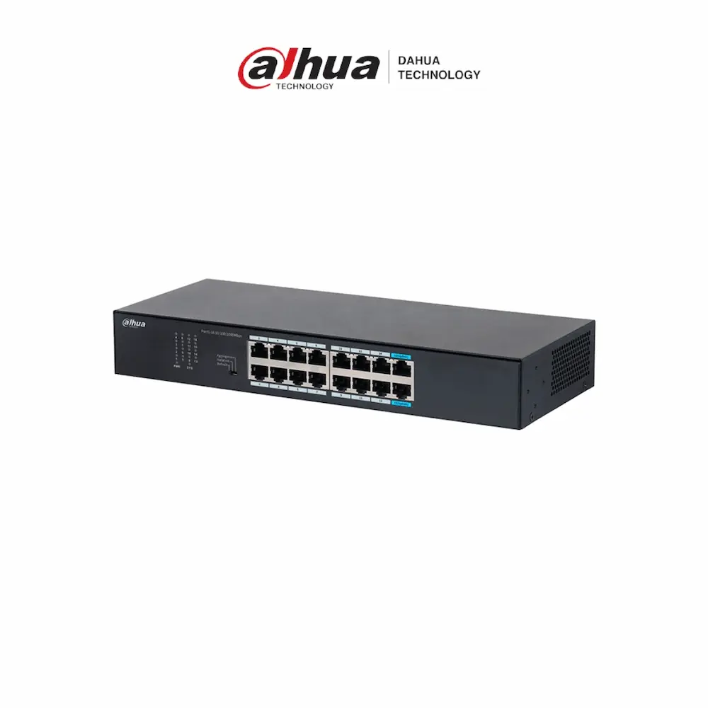SWITCH DAHUA DH-S3016-16GT 16 PUERTOS ETHERNET GIGABIT METALICO MONTAJE EN RED, PARED Y ESCRITORIO DH-S3016-16GT