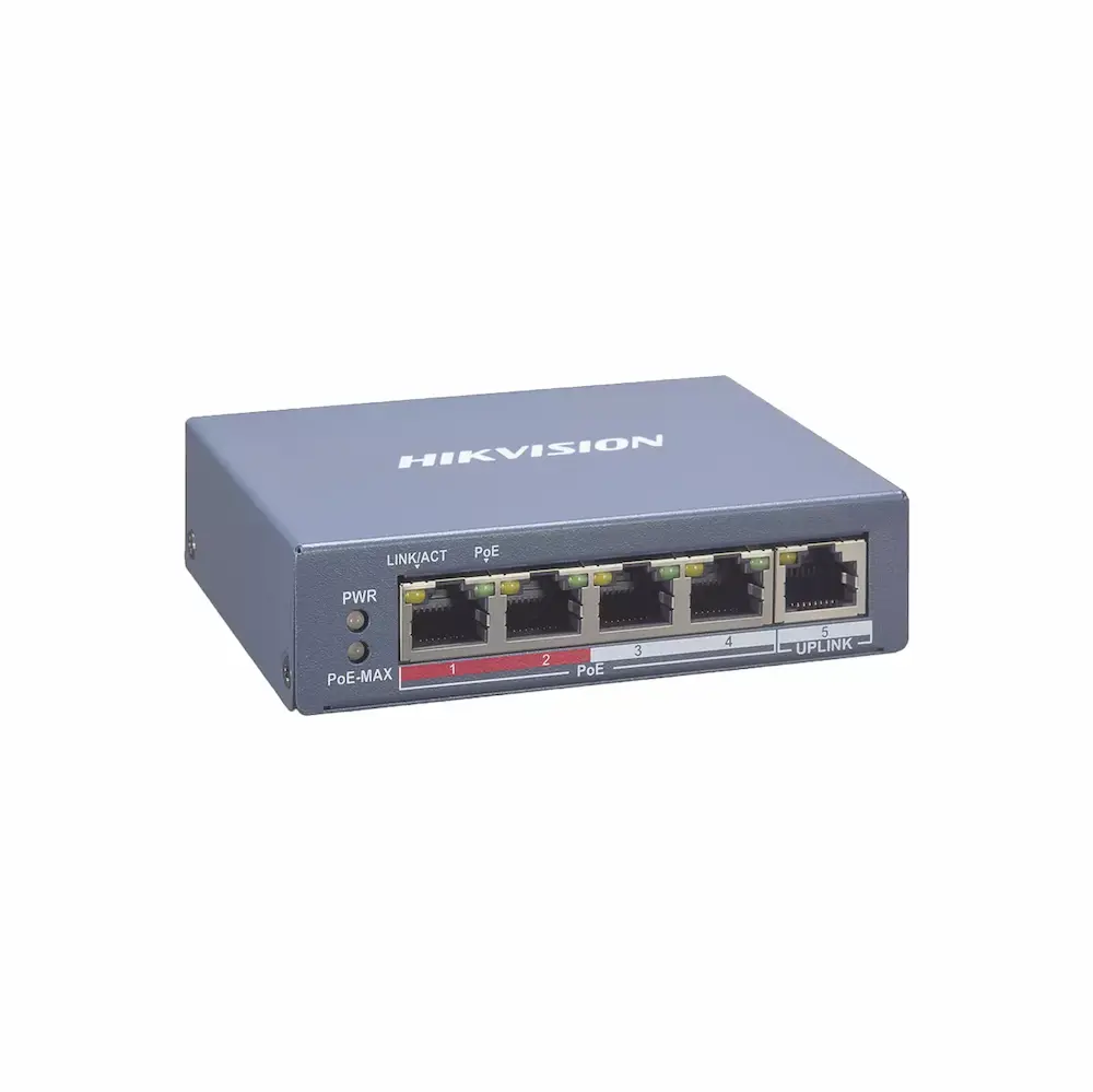 SWITCH POE HIKVISION DS-3E1505P-EI/M 4X PUERTOS GIGABIT POE IEEE 802.3AF/AT 50W 1X ETHERNET GIGABIT 802.1Q VLAN METAL 54VDC, 0.92A DS-3E1505P-EI/M