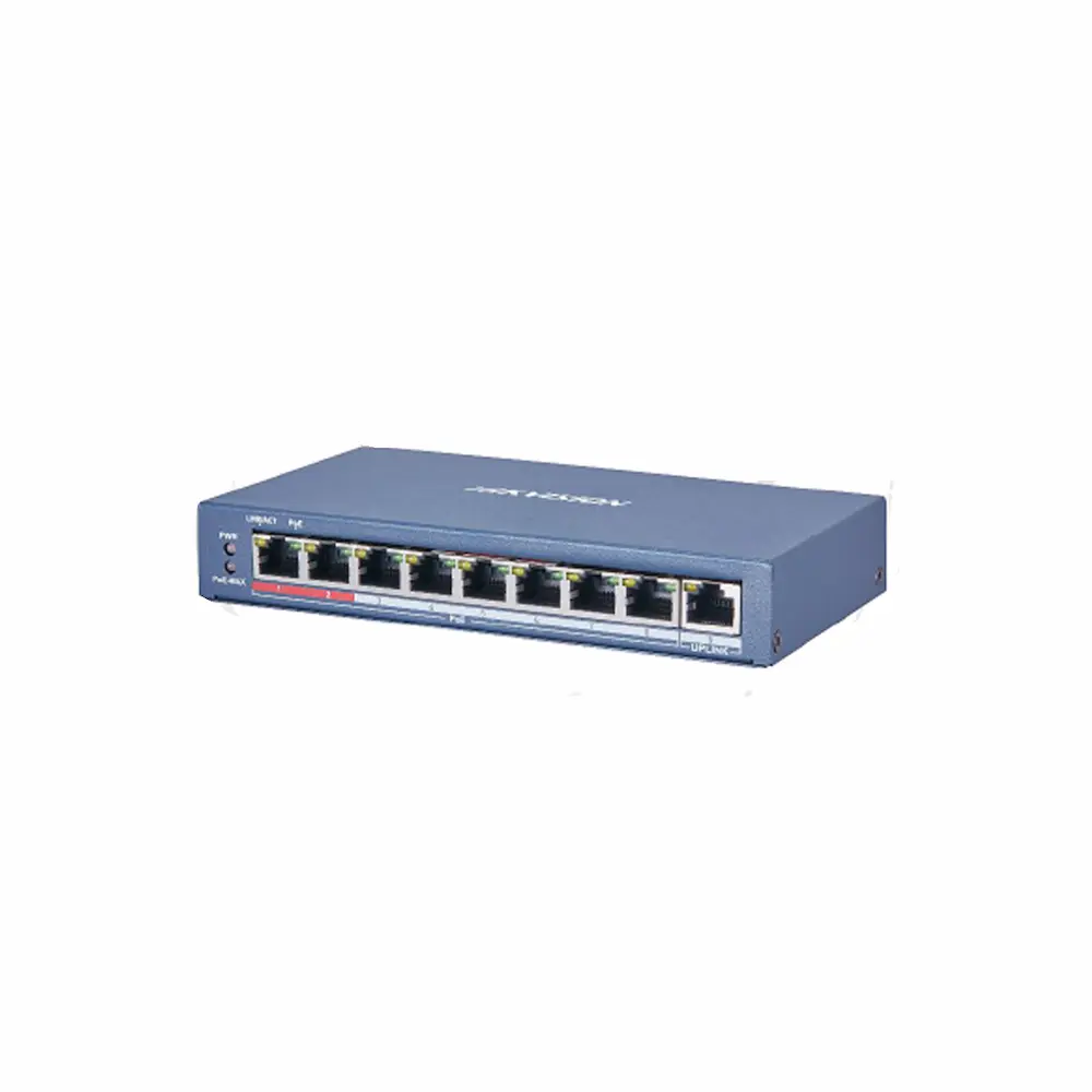 SWITCH POE HIKVISION DS-3E0109P-E 8X PUERTOS POE+ 1X UPLINK 110W POE 300MTS 120W 48VAC 2.5AMP DS-3E0109P-E