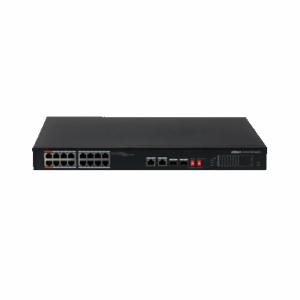 SWITCH POE DAHUA DH-PFS3218-16ET-135 16 PUERTOS ETHERNET 2X SFP POE INTELIGENTE LARGA DISTANCIA 250M CAPA 2 100V–240V 135W DH-PFS3218-16ET-135